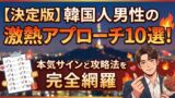 いかがでしたか? 韓国人男性の脈ありサインは、**「情熱的なアプローチ」「誠実な気遣い」**のセットです。